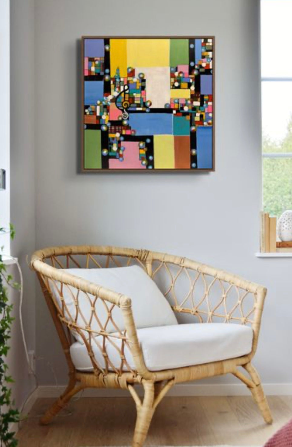 “Let the Music Begin” is a captivating piece of art that blends vibrant colors, geometric patterns, and rhythmic energy to celebrate the connection between music and visual art. This dynamic painting features bold black lines and a harmonious interplay of bright, overlapping hues, creating a composition that feels alive with movement and melody. The scattered orbs throughout the artwork evoke the fluidity of musical notes, while the prominent treble clef serves as a focal point, symbolizing the universal language of music. Perfect for music lovers, art enthusiasts, and those seeking inspiration, “Let the Music Begin” transforms any space into a symphony of color and creativity. Add this striking artwork to your collection and experience the uplifting fusion of sound and sight.