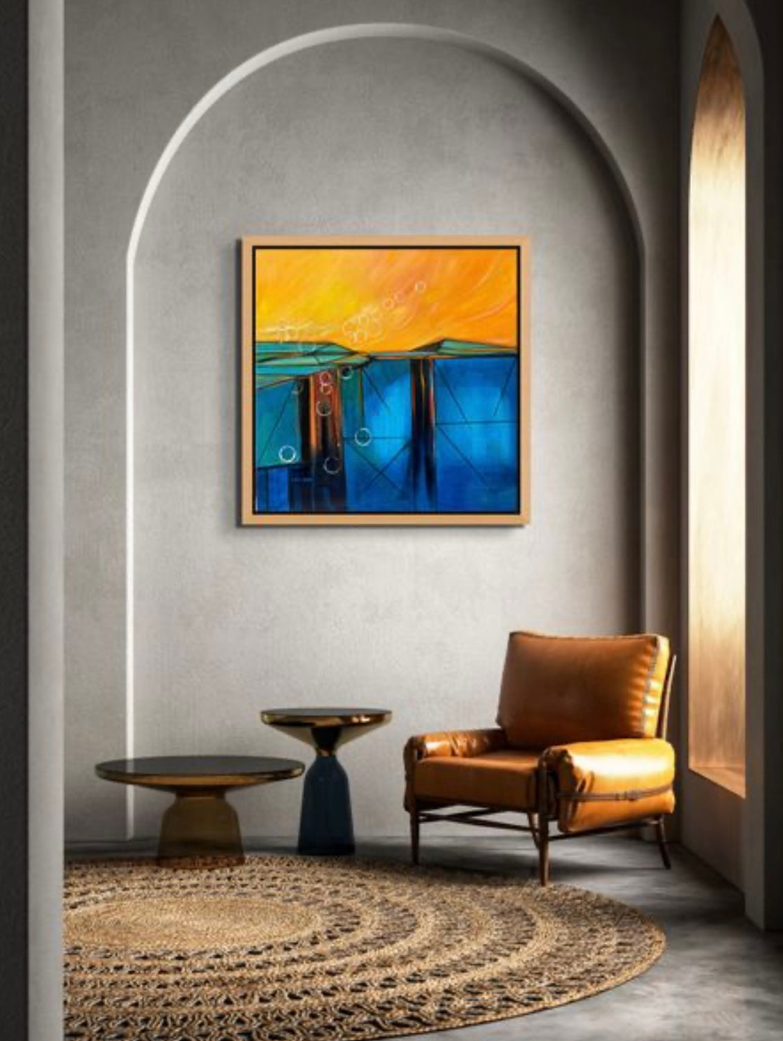 With its bold color palette and harmonious blend of structure and fluidity, “Ocean Blaze” speaks to those drawn to the powerful, untamed beauty of the natural world. This piece invites viewers to reflect on the dynamic interplay between calm and chaos, reminding them of nature’s resilience and beauty. Perfect for art collectors and enthusiasts who appreciate works that convey depth, emotion, and a connection to the natural elements, “Ocean Blaze” makes a striking statement in any contemporary space.